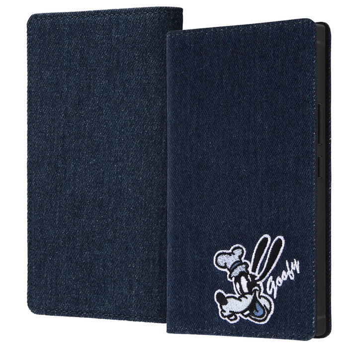 『ディズニーキャラクター』/耐衝撃 徹底保護 手帳型デニムケース Squl / ドナルドダック_モノクロ