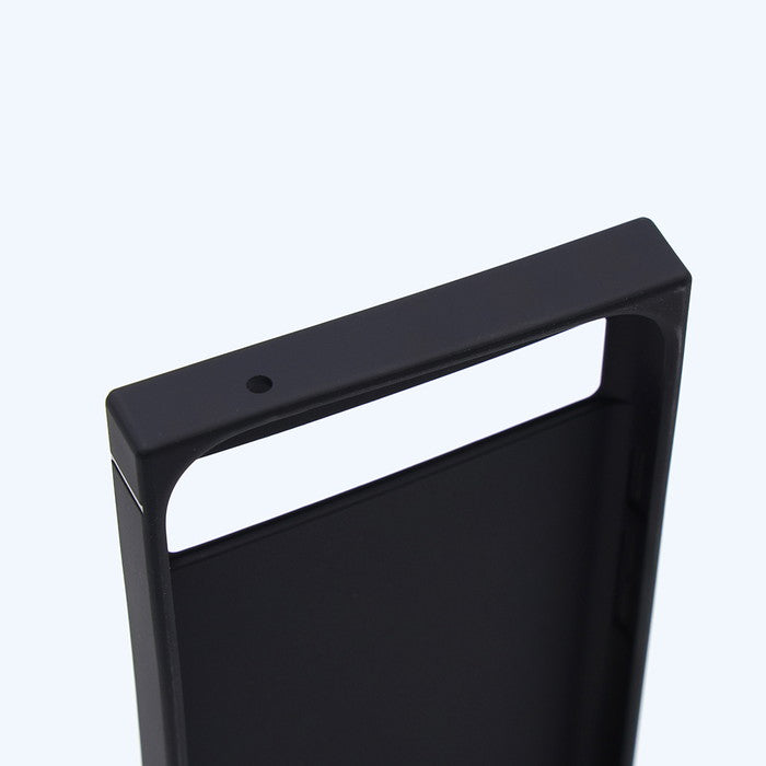 傷に強いポリカーボネイト。アクリルより耐衝撃性が高く、ガラスより割れにくい。衝撃をやわらげる四つ角スクエア形状。やわらかなTPU素材。