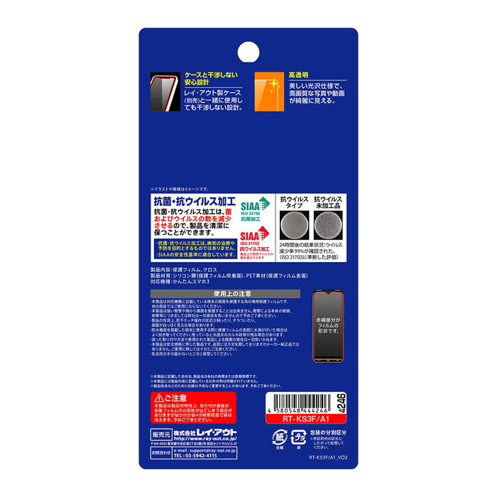 かんたんスマホ3 フィルム 指紋防止 光沢 抗菌・抗ウイルス