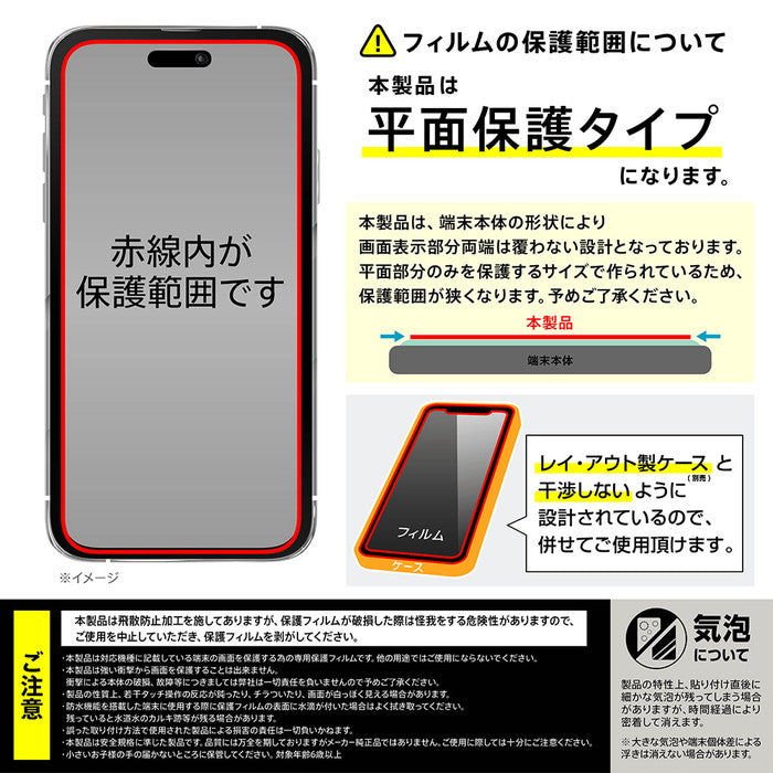 ブルーライトを約40%軽減、画面が綺麗に見える。PETフィルムの約5倍の硬度で傷付きにくい。汚れをはじき清潔に保つ防汚コート仕様。レイ・アウト製ケース(別売)と一緒に使える安心設計。