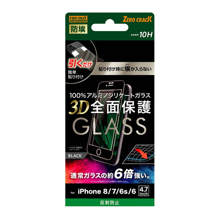 ガラスフィルム 防埃 3D 10H アルミノシリケート 全面保護 反射防止 / ブラック